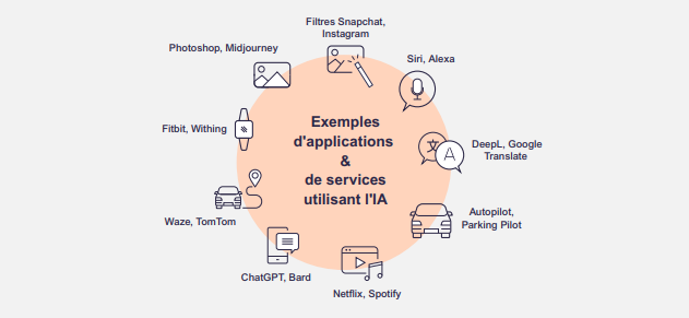 L’IA est un vaste domaine qui couvre un large éventail de sujets, y compris l’informatique, l’analyse de données et les statistiques, l’ingénierie matérielle et logicielle, la linguistique, les neurosciences, et même la philosophie et la psychologie. Au niveau opérationnel pour les entreprises, l’IA correspond à un ensemble de technologies basées principalement sur le machine learning et le deep learning, utilisées pour l’analyse de données, les prédictions et les prévisions, la catégorisation des objets, le traitement du langage naturel, les recommandations, la récupération intelligente de données, etc. des assistants vocaux tels que Siri qui se trouve sur Apple,Google assistant, des applications de navigation tels que Google maps & les services de GPS, les réseaux sociaux où il y’a un chatbot pour répondre à des questions en fonction des demandes des utilisateurs & des clients et des recommandations en ligne tels que Netflix et Amazon et d’autres intelligences artificielles sur nos téléphones, les tablettes et les ordinateurs. En anglais, on parle de « artificial intelligence ».